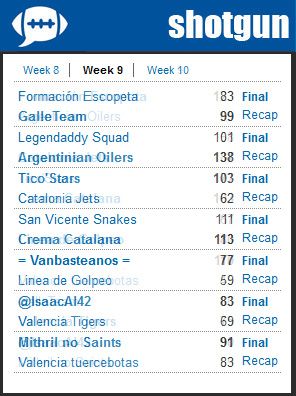 Como cada semana, nos gusta presentarles los resultados de nuestras ligas de fantasy football, así que aquí estamos presentándoles los resultados de esta jornada de fantasy football: